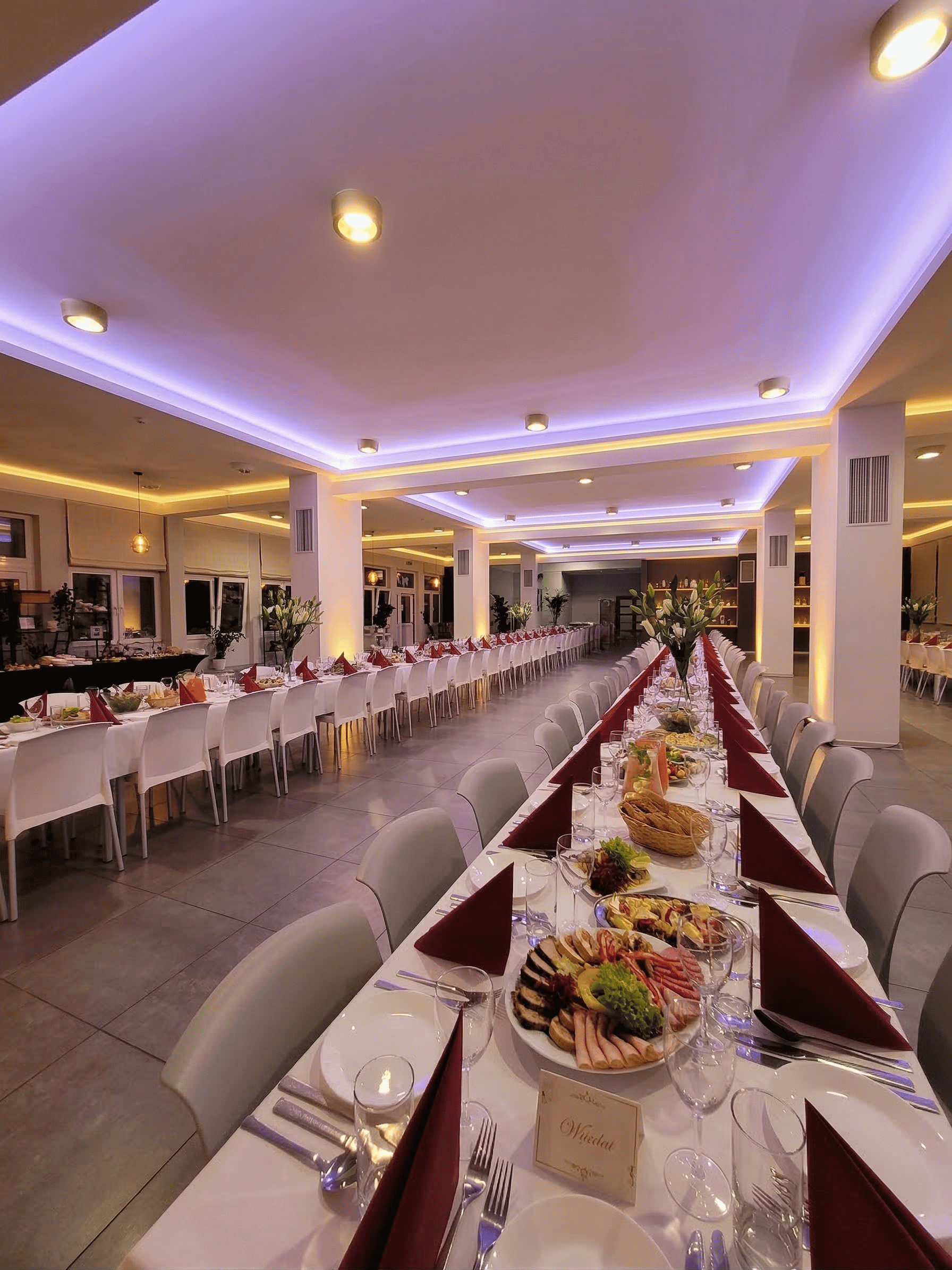 Nasza kuchnia centralna w Łodzi każdego dnia przygotowuje setki posiłków dla pracowników lokalnych przedsiębiorstw, uczestników szkoleń i gości wydarzeń firmowych. Z czasem rozszerzyliśmy działalność o kompleksową obsługę przyjęć okolicznościowych – komunii, urodzin, wigilii i spotkań rodzinnych.